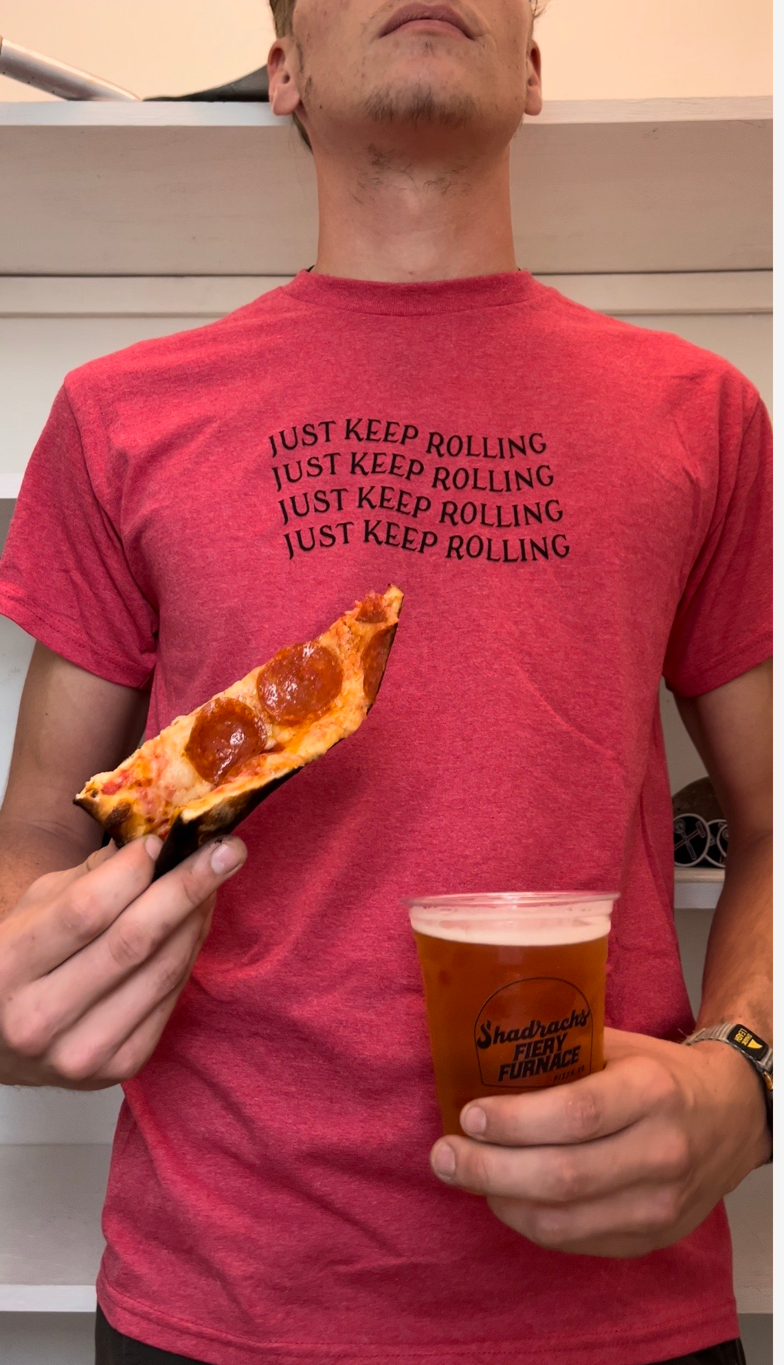 "This universe henceforth without a master seems to him neither sterile nor futile. Each atom of that pizza, each powdered flake of that flour-filled kitchen, in itself, forms a world. The struggle itself toward the heights is enough to fill a man's heart. One must imagine Slicyphus happy.” -Albert Camus (kinda)